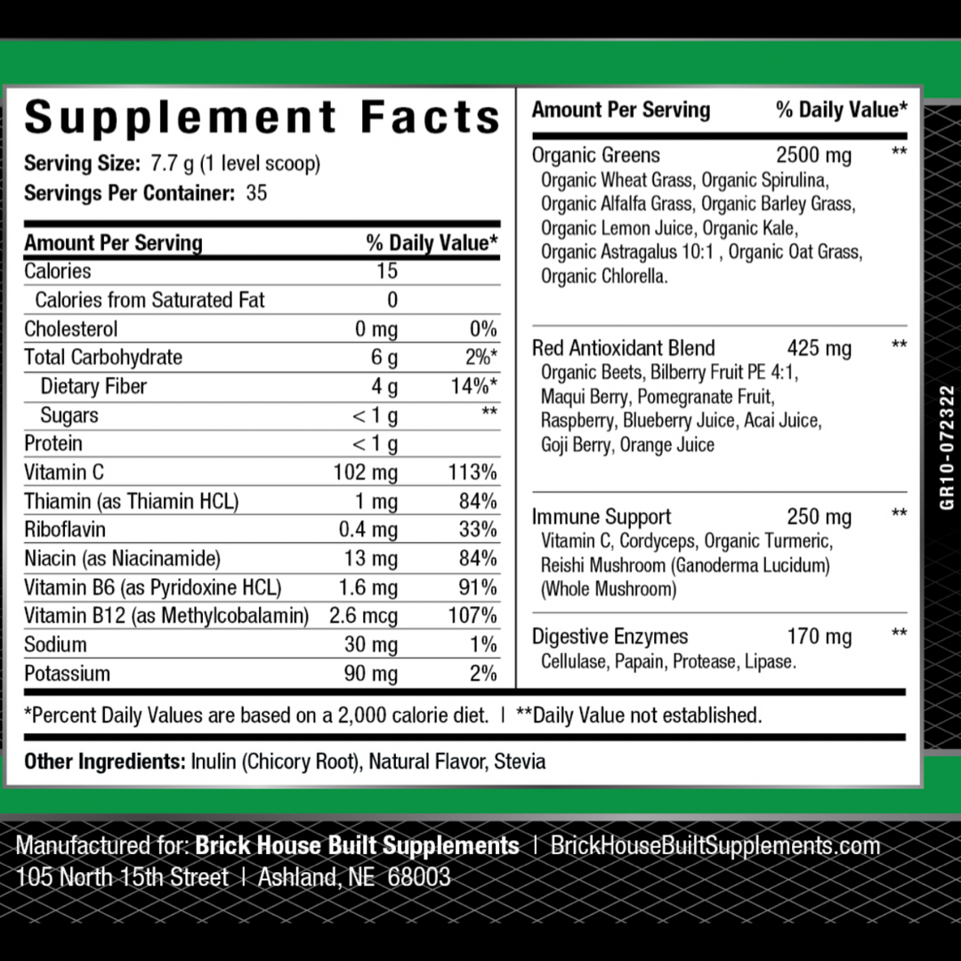 This product was designed to give people a clean and simple solution for getting essential micronutrients into their diet. These micronutrients are used to support immune health and energy levels. Each serving is PACKED with an abundance of Greens and Superfoods including: